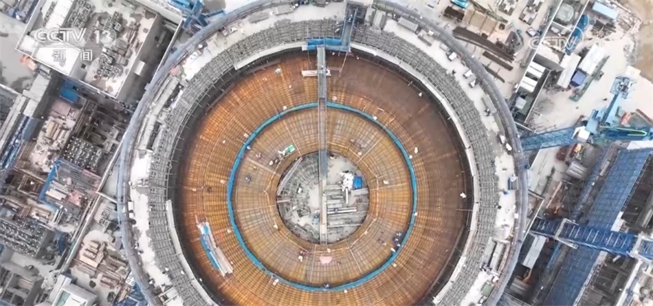 總臺央視記者 吳天白:在“華龍一號”太平嶺1號機組的最高點穹頂,我們可以看到幾十位工作人員正在加緊施工,他們今天的主要工作是對已經(jīng)完成安裝的穹頂鋼筋進行檢查驗收?,F(xiàn)場工作人員告訴我,別看穹頂面積有5個籃球場這么大,他們的工作都是以毫米為單位的精細活。