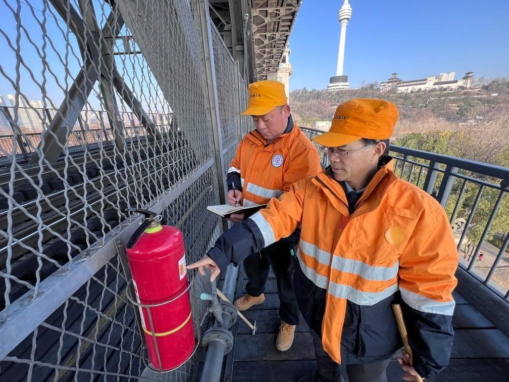 農(nóng)歷大年初三,湖北武漢陽光明媚。“萬里長(zhǎng)江第一橋”——武漢長(zhǎng)江大橋宛若一條巨龍飛架于江水之上,氣勢(shì)恢宏。身穿工作服的陳卿明和同事,低頭、彎腰,循著大橋鐵道仔細(xì)地檢視鋼梁、枕木。