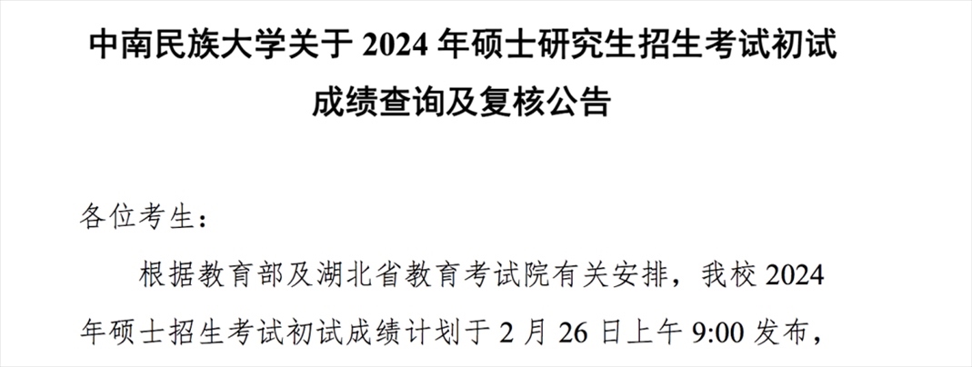 中南民族大學(xué)考研初試成績(jī)
