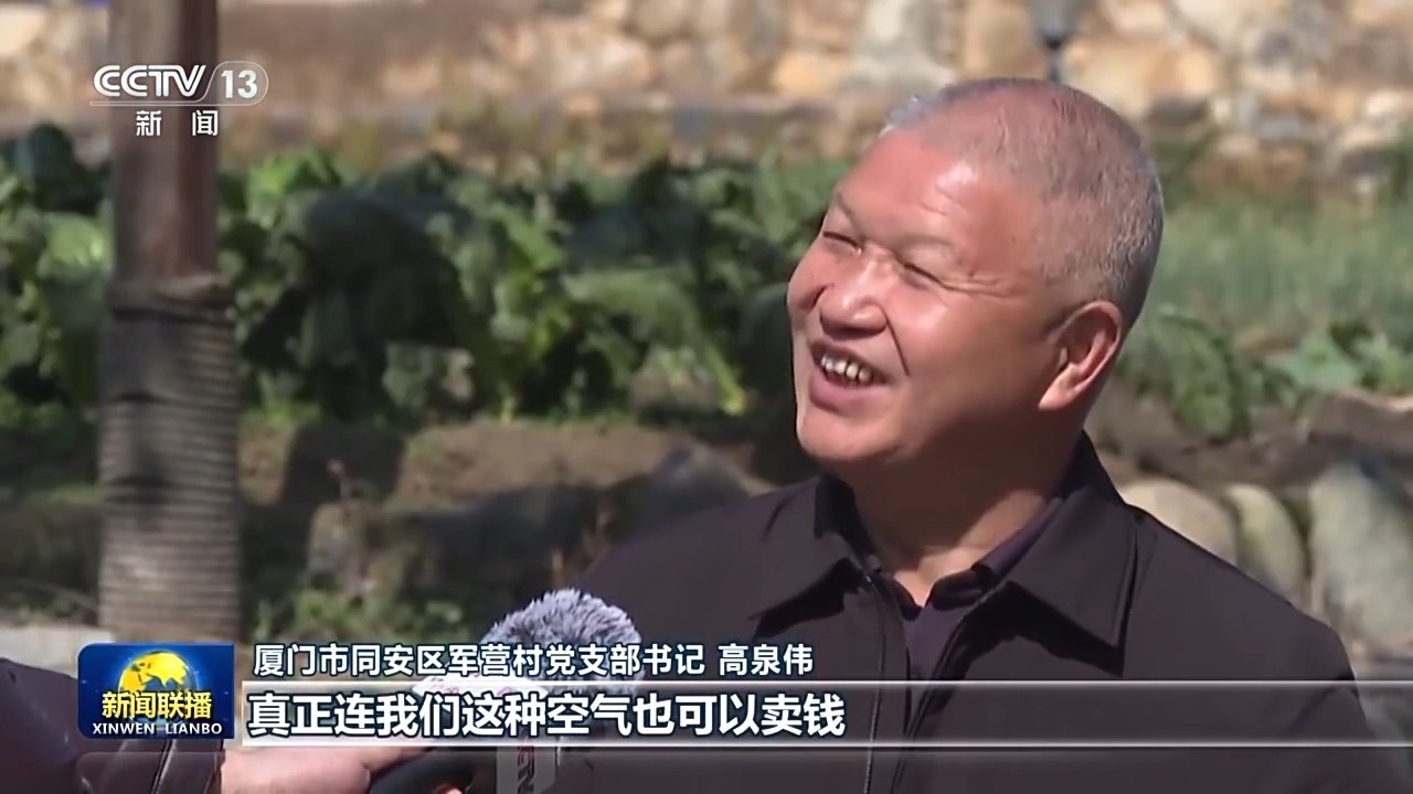 廈門市同安區(qū)軍營(yíng)村黨支部書(shū)記 高泉偉:真正連我們這種空氣也可以賣錢,我們茶園所生產(chǎn)的這些碳匯,已經(jīng)賣出去了兩次了。