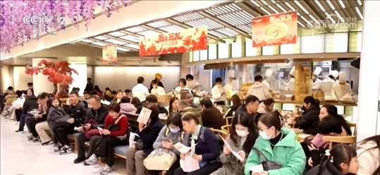 大數據顯示,正月初一到初十,全國重點商圈客流量達到8010萬人次,較2023年同期增長81%。涌動的人潮推升住宿餐飲消費。國家稅務總局增值稅發(fā)票數據顯示,整個春節(jié)假期,住宿服務日均銷售收入同比增長25.4%,餐飲服務日均銷售收入同比增長31.5%。在江蘇南京,多家美食餐飲“南京首店”引來大批消費者嘗鮮。