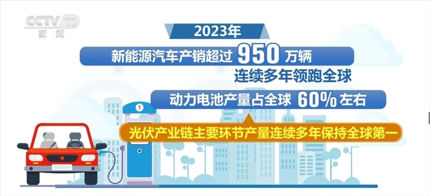 2023年,我國(guó)高技術(shù)制造業(yè)、裝備制造業(yè)增加值占規(guī)模以上工業(yè)增加值比重分別達(dá)到15.7%和33.6%。新能源汽車(chē)產(chǎn)銷(xiāo)超過(guò)950萬(wàn)輛,連續(xù)多年領(lǐng)跑全球,動(dòng)力電池產(chǎn)量占全球60%左右,光伏產(chǎn)業(yè)鏈主要環(huán)節(jié)產(chǎn)量連續(xù)多年保持全球第一。