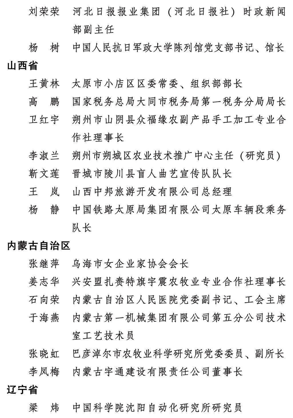 全國三八紅旗手標(biāo)兵名單