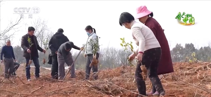 在湖北孝感安陸市銀山村的油茶種植基地里,村民們忙著移栽油茶苗木,運苗、挖坑、除草、培土,現場一派忙碌。