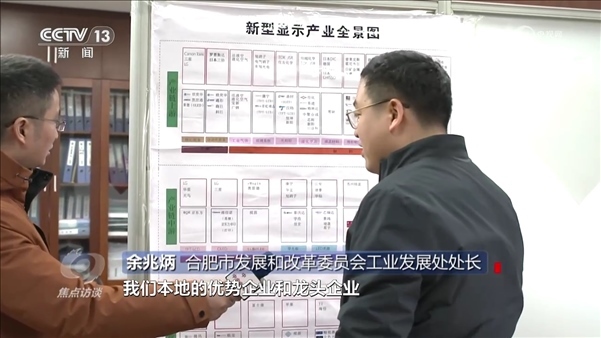 合肥市發(fā)展和改革委員會(huì)工業(yè)發(fā)展處處長(zhǎng)余兆炳:“新型顯示產(chǎn)業(yè)全景圖上面顯示了合肥市發(fā)展新型顯示的產(chǎn)業(yè)鏈的上游、中游、下游本地的優(yōu)勢(shì)企業(yè)和龍頭企業(yè),有這個(gè)全景圖,我們對(duì)標(biāo)作戰(zhàn)、掛圖作戰(zhàn)非??梢暬鲬?zhàn)。”