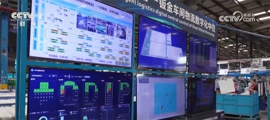 在生產(chǎn)車間里,不僅有大屏幕,還有很多小屏幕。而在設(shè)備檢驗(yàn)環(huán)節(jié),這家工廠還實(shí)現(xiàn)了虛擬和現(xiàn)實(shí)的結(jié)合。