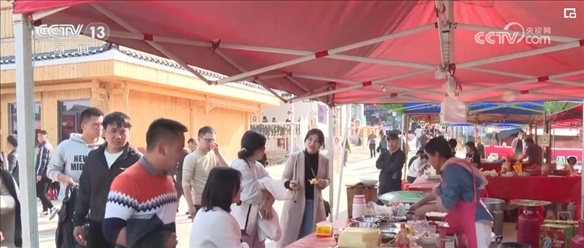 在球場附近,一些商鋪和攤位的“村BA”非遺集市也在3月22日開市。廣大球迷和游客可以在比賽間隙,就近品嘗來自貴州各地的美食,感受豐富多彩的非遺文化。集市還專門為附近村民預留了30個攤位,幫助他們在家門口創(chuàng)業(yè)、就業(yè)。
