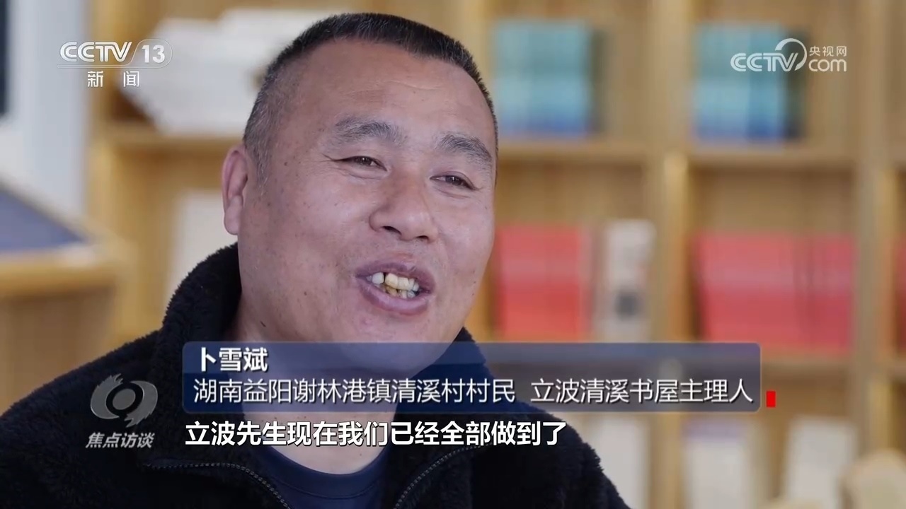 湖南益陽謝林港鎮(zhèn)清溪村村民、立波清溪書屋主理人卜雪斌:“這個(gè)時(shí)間我記得清清楚楚,村里是2022年3月16日,第一次到我家里來,宣傳書屋的構(gòu)想,3月19日做設(shè)計(jì)方案的就過來了,3月22日基本上就動(dòng)工了?!?/p>