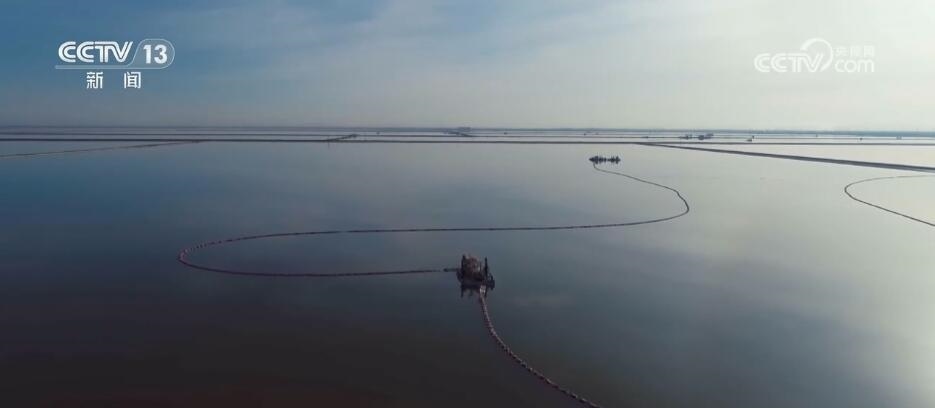 從空中俯瞰,一望無垠的鹽池里碧波蕩漾,一艘艘采鹽船在碧綠的湖面上緩緩游動作業(yè)。在當?shù)?,含有各種鹽類礦物質的水被稱作“鹵水”。“鹵水”如何轉變成鉀肥?第一步便是采鹽。