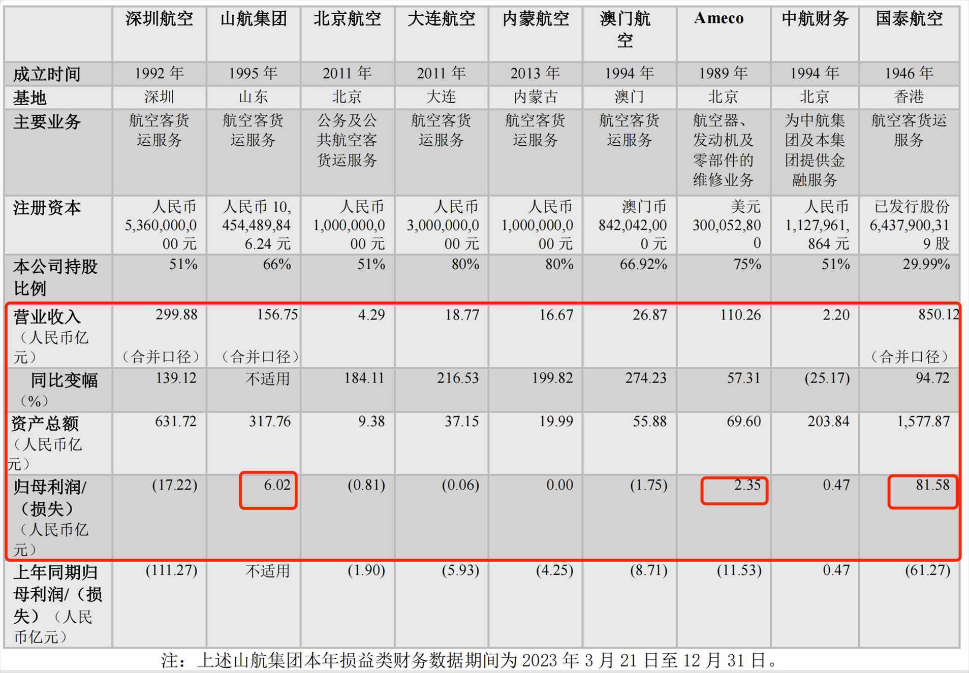 具體來(lái)看國(guó)航,分別控股和持股的山航集團(tuán)與國(guó)泰航空實(shí)現(xiàn)盈利。山航集團(tuán)去年?duì)I收156.75億元,歸母凈利潤(rùn)為6.02億元;國(guó)泰航空去年?duì)I收850.12億元,同比增超九成,歸母凈利潤(rùn)為81.58億元,上年同期為虧損61.27億元;內(nèi)蒙古航司實(shí)現(xiàn)營(yíng)收16.67億元,同比增近2倍,歸母凈利潤(rùn)為0元,上年同期為虧損4.25億元。航空器維修公司Ameco去年?duì)I收110.26億元,同比增57.31%,實(shí)現(xiàn)歸母凈利潤(rùn)為2.35億元,去年同期為虧損11.53億元。