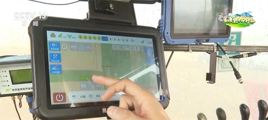 記者看到,播種機(jī)上有幾塊顯示屏,其中一塊顯示屏可以通過北斗導(dǎo)航對整個農(nóng)機(jī)的駕駛速度進(jìn)行有效控制,能夠保證播下去的種子株間距更加均勻,而且還能夠準(zhǔn)確、不漏種。