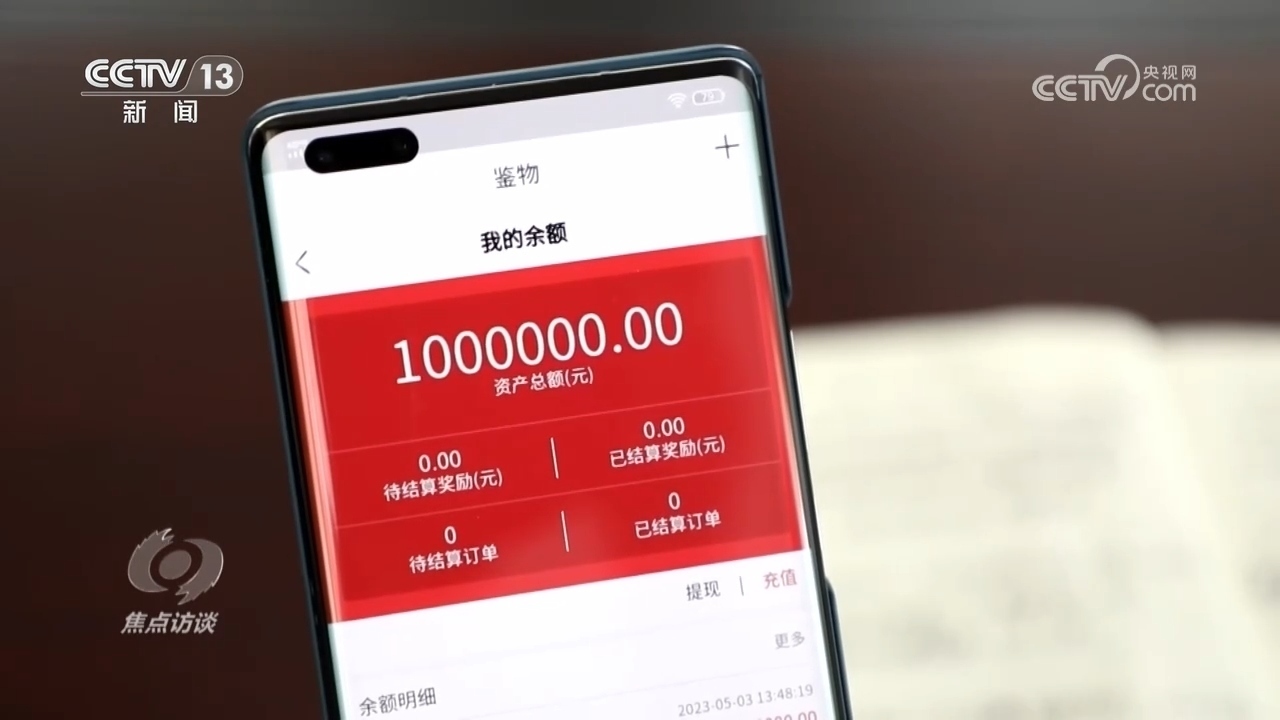 嚴(yán)女士:“我看到定金已經(jīng)打到我的‘鑒物’APP賬戶里面了,客服說(shuō)是不能提現(xiàn)的,要交兩萬(wàn)塊錢的保證金,就是說(shuō)我現(xiàn)在打了兩萬(wàn)塊錢,一家就成了富人,102萬(wàn)就可以從里面提取出來(lái)了。”
