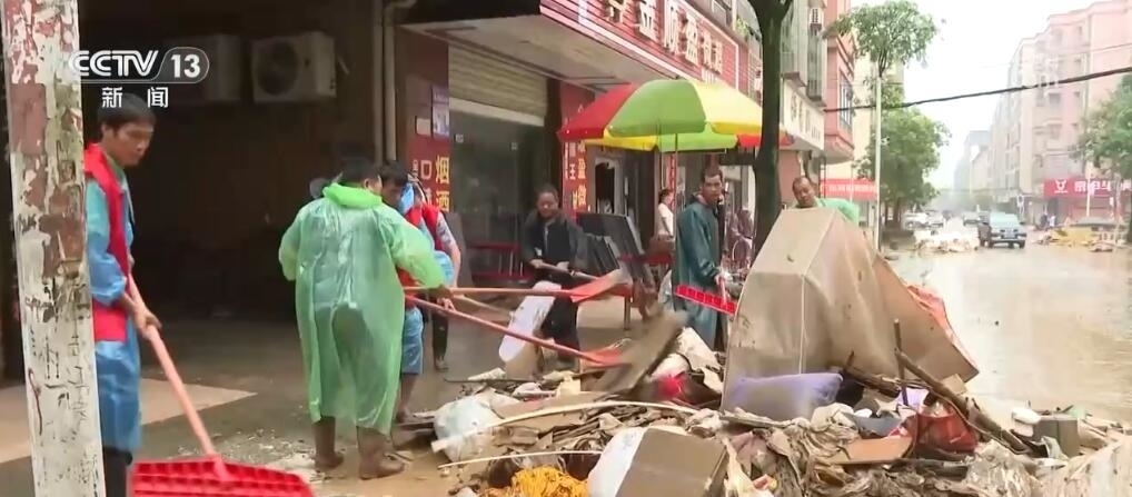 在清遠(yuǎn)英德市浛洸鎮(zhèn),被浸了兩天多的鎮(zhèn)區(qū)已經(jīng)全部退水,當(dāng)?shù)亟M織黨員干部投入清淤工作,同時加緊時間進(jìn)行清洗和消殺。