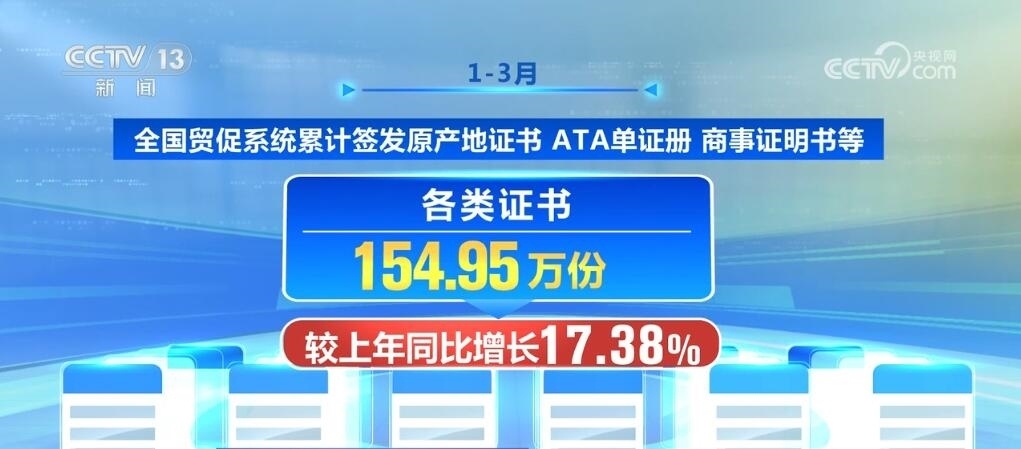 1—3月,全國(guó)貿(mào)促系統(tǒng)累計(jì)簽發(fā)原產(chǎn)地證書(shū)、ATA單證冊(cè)、商事證明書(shū)等各類證書(shū)154.95萬(wàn)份,較上年同比增長(zhǎng)17.38%。其中,全國(guó)貿(mào)促系統(tǒng)非優(yōu)惠原產(chǎn)地證書(shū)簽證金額共計(jì)849.31億美元,同比增長(zhǎng)2.47%;全國(guó)貿(mào)促系統(tǒng)優(yōu)惠原產(chǎn)地證書(shū)簽證金額共計(jì)161.21億美元,同比增長(zhǎng)4.73%。