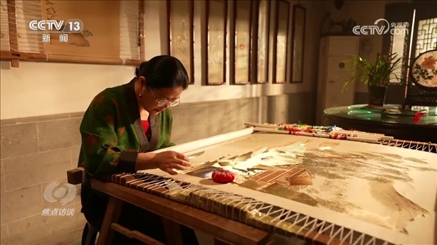 盧建英:“當(dāng)時我在繡一幅《桃花太平鳥圖》,習(xí)近平總書記走到了我的繃架前。他說你好,很親切,很和藹,看得非常仔細(xì)。他說中華文化的傳承力有多強(qiáng),通過這個蘇繡可以看出來,像這樣的功夫充分體現(xiàn)出中國人的韌性、耐心和定力,這是中華民族精神的一部分,能得到總書記的認(rèn)可,真的是倍感榮耀?!?/p>