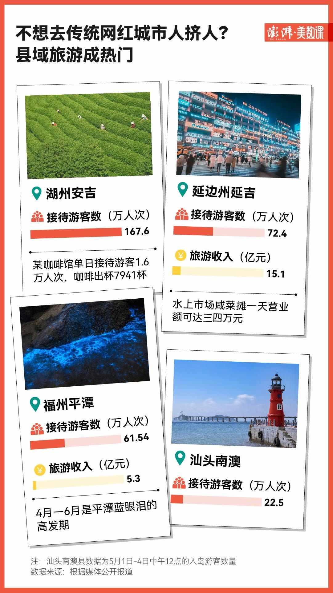 不僅如此,旅游下沉化的趨勢已經(jīng)來到了縣級市。湖州安吉在這個“五一”假期就收獲了167.6萬人次的游客數(shù)量。據(jù)“安吉旅游”公眾號,當?shù)啬晨Х瑞^單日接待游客1.6萬人次,咖啡出杯7941杯。