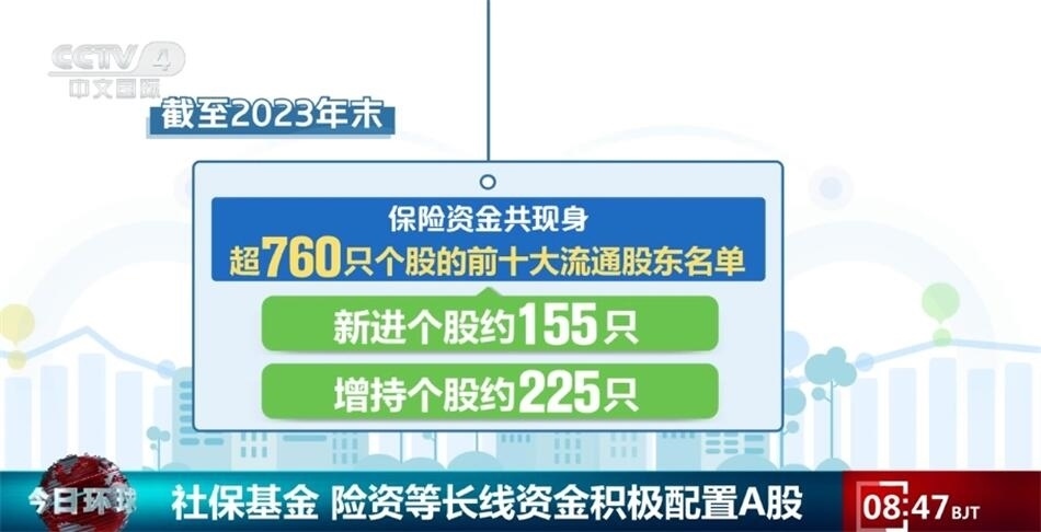 央視網(wǎng)消息:A股2023年年報日前披露結(jié)束,上市公司的前十大流通股東情況顯示,包括社?;?、保險資金、合格境外機構(gòu)投資者等在內(nèi)的長線資金入市步伐正在不斷加快,A股中長期投資力量不斷壯大。