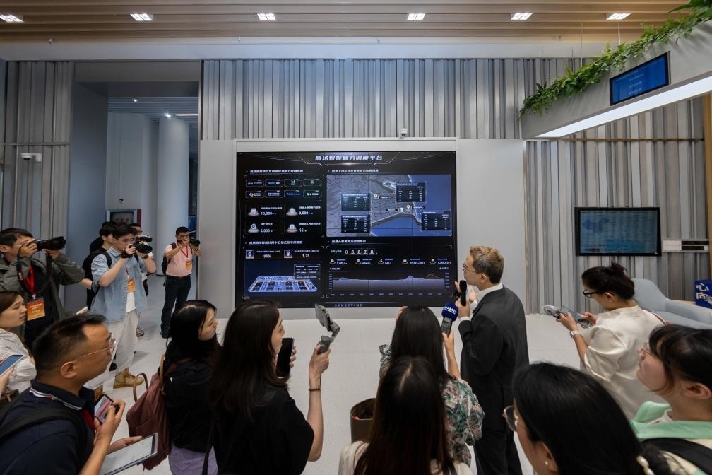 ?5月23日,大模型企業(yè)、智象未來生態(tài)合作部總經(jīng)理沈偉峰為采訪團(tuán)介紹運(yùn)用大模型文生視頻。新華社記者 王翔 攝