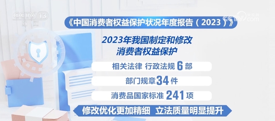 年度報告顯示,2023年我國制定和修改了消費(fèi)者權(quán)益保護(hù)相關(guān)法律、行政法規(guī)6部、部門規(guī)章34件、消費(fèi)品國家標(biāo)準(zhǔn)241項(xiàng),修改優(yōu)化更加精細(xì),立法質(zhì)量明顯提升。