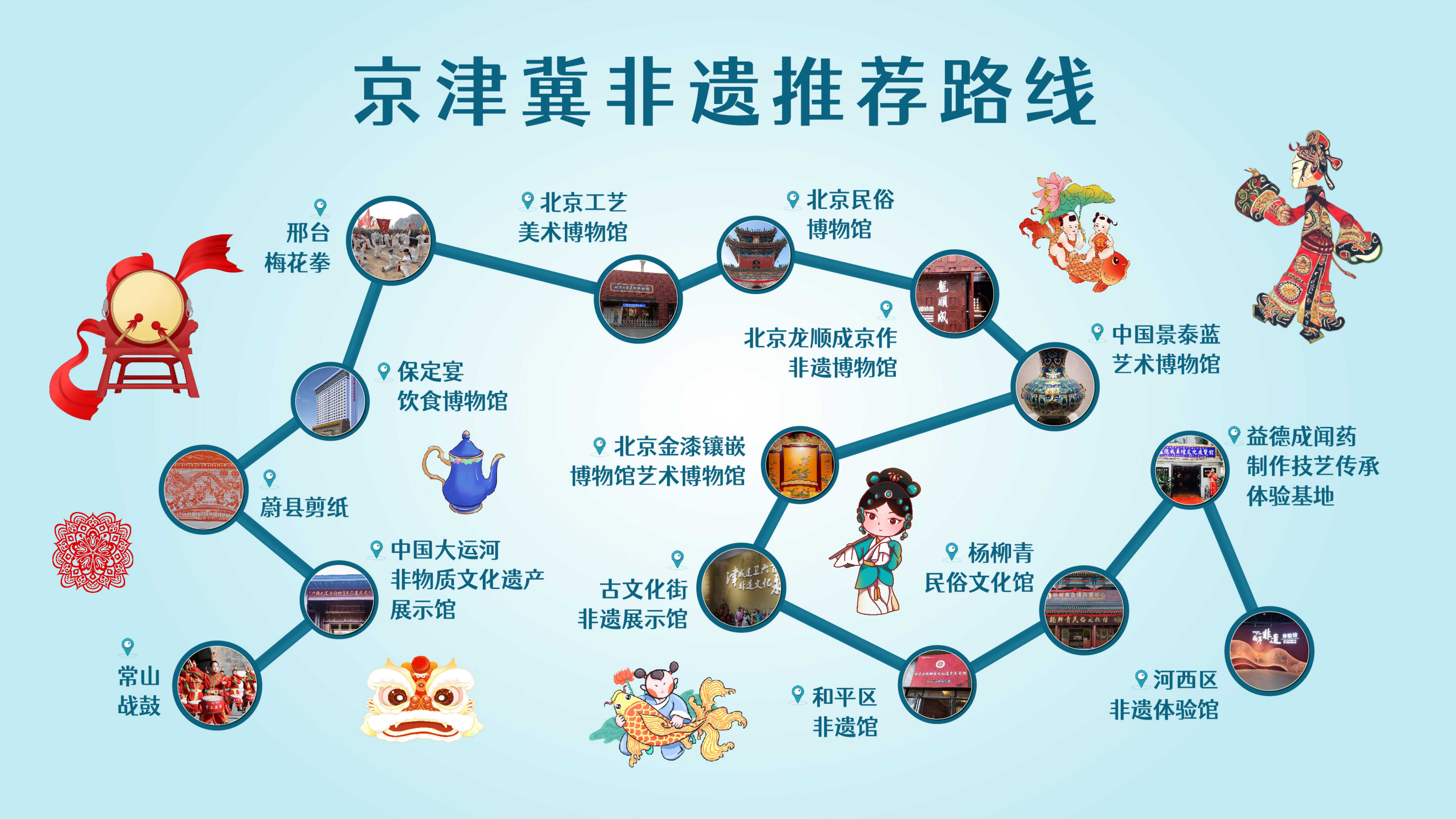 本次發(fā)布的京津冀文旅地圖涵蓋三地美食、非遺、古跡、紅色等四條線路,包含長城、京張體育文化旅游帶、大運河國家文化公園建設、冬奧遺產(chǎn)等多處旅游資源和貫穿全年的文旅系列活動。