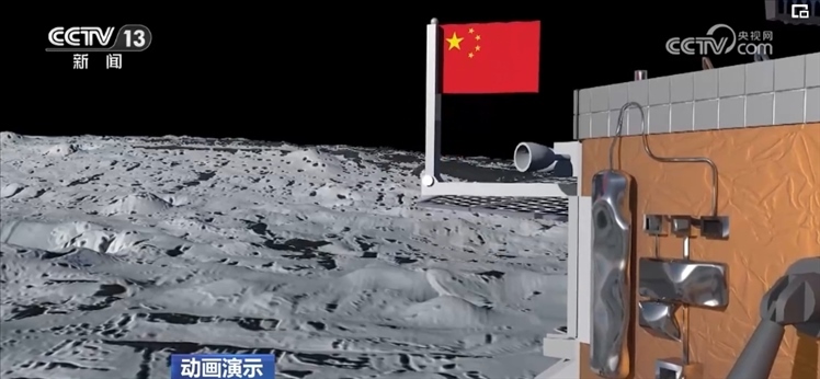 空天兔:著陸器和上升器組合體先進(jìn)行了幾個小時的鉆取,就是把一個長長的鉆頭伸入月面,可以采集月表以下的樣品,休息了幾小時后,當(dāng)鵲橋二號姐姐再次發(fā)來指令,著上組合體又用機械臂進(jìn)行了十多個小時的表取采樣,也就是一鏟子一鏟子地挖月球表面的土壤。過程很漫長,可不像你剛剛抓住我們能那么輕松。采樣完成后,一面五星紅旗在月球背面展開。哇,特別鮮艷。