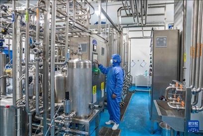 新華社拉薩6月8日電(記者楊帆、陳尚才、孫非)在各式各樣的奶制品機器旁,幾名工作人員正記錄著其運行情況;實驗室里,檢驗人員在對牛奶進行抽樣檢測……在位于西藏那曲市聶榮縣嘎確牧場的奶制品生產(chǎn)廠房里,罐裝酸奶生產(chǎn)流水線的準備工作正在進行。