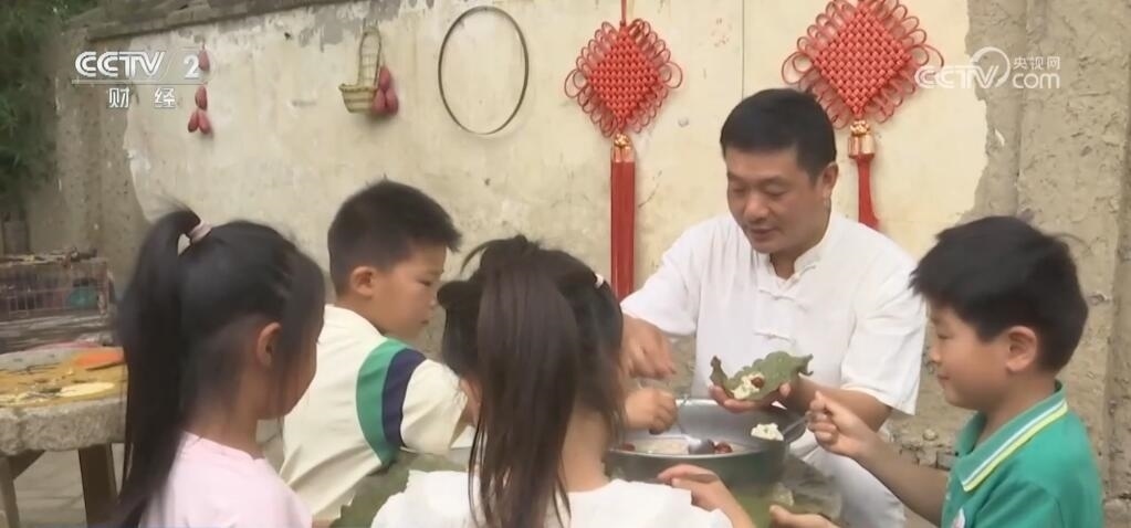 在河南南陽(yáng)黃臺(tái)崗鎮(zhèn)一處農(nóng)家小院里,孩子們正圍坐在圓桌旁,跟大人們一起學(xué)著制槲包。和其他地方用葦葉不同,這里的粽子用的是當(dāng)?shù)靥赜械拈螛?shù)的葉子,不僅防腐,而且味道清香,相較于傳統(tǒng)的錐型粽,槲包呈長(zhǎng)方形,吃起來(lái)也別有風(fēng)味。