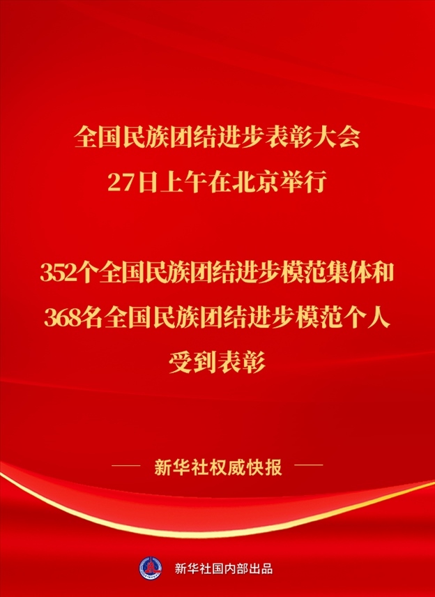 全國民族團(tuán)結(jié)進(jìn)步表彰大會(huì)27日上午在北京舉行。352個(gè)全國民族團(tuán)結(jié)進(jìn)步模范集體和368名全國民族團(tuán)結(jié)進(jìn)步模范個(gè)人受到表彰。各族兒女像石榴籽一樣緊緊抱在一起,推動(dòng)中華民族成為認(rèn)同度更高、凝聚力更強(qiáng)的命運(yùn)共同體。
