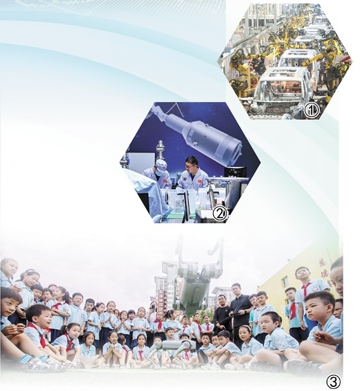 圖①:湖北武漢經開區(qū)的嵐圖汽車電動化焊裝車間,機器人正在流水線上作業(yè)。 新華社記者 肖藝九攝 圖②:中國科學院空間光學系統(tǒng)在軌制造與集成重點實驗室的科研人員在進行科研工作。 新華社記者 許 暢攝 圖③:河北邯鄲市復興區(qū)前進小學的學生們在觀看機器狗表演。聶長青攝(人民視覺)