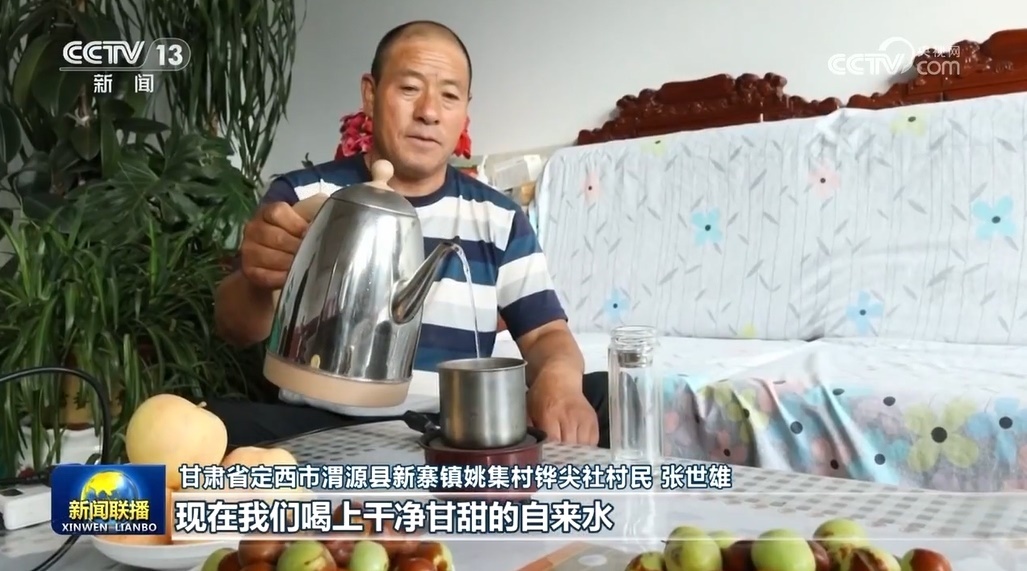 金秋十月,甘肅定西渭源縣姚集村一派豐收景象??稍谑昵?,缺水讓這里土地貧瘠,村民都是靠水窖存下的雨水和苦咸水生活。