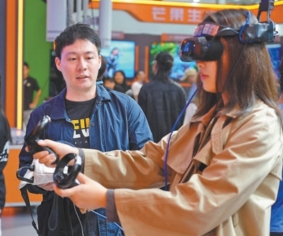 2024中國新媒體技術(shù)展上,參觀者在進行AR互動體驗。人民網(wǎng)記者 吳茜薇攝