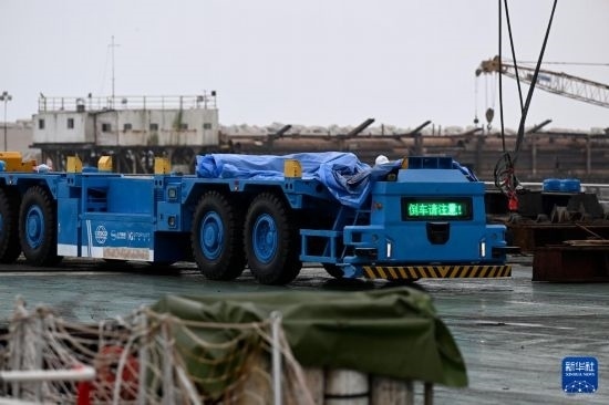 6月27日,岸邊集裝箱起重機和軌道吊運抵秘魯錢凱港。 新華社發(fā)(上海振華重工供圖)