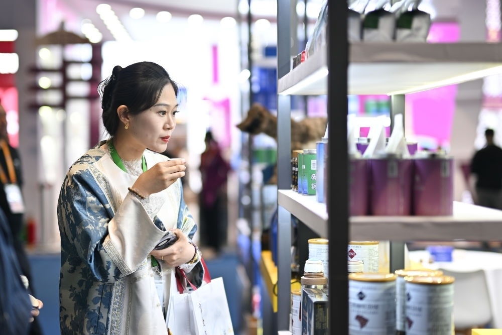 2024年11月6日,參會(huì)人員在上海舉行的第七屆進(jìn)博會(huì)食品及農(nóng)產(chǎn)品展區(qū)品嘗來自巴西的咖啡。