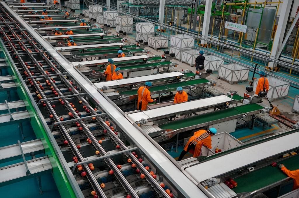 9月29日,工作人員在昭通市超越蘋(píng)果基地蘋(píng)果分選線上工作。金秋時(shí)節(jié),位于烏蒙山區(qū)的云南省昭通市迎來(lái)了蘋(píng)果豐收季。近年來(lái),昭通市大力發(fā)展蘋(píng)果產(chǎn)業(yè),將其作為鞏固拓展脫貧攻堅(jiān)成果、推進(jìn)鄉(xiāng)村振興的重要支柱產(chǎn)業(yè)。2023年,全市蘋(píng)果綜合產(chǎn)值達(dá)到130億元,蘋(píng)果成為了群眾的增收致富果。新華社記者陳欣波攝