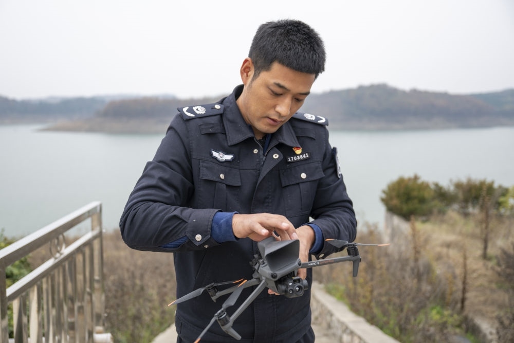 2024年12月8日,丹江口市庫區(qū)綜合執(zhí)法大隊(duì)六中隊(duì)執(zhí)法隊(duì)員在操作無人機(jī)。