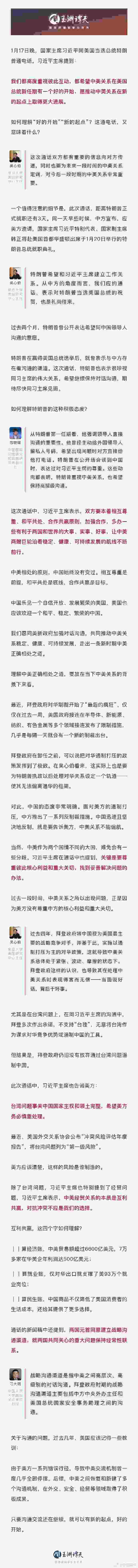 1月17日晚,中美元首通電話。一個值得注意的細節(jié)是,此次通話,距離特朗普正式就職還有3天。這通電話,意味著什么?來看譚主的獨家解讀。