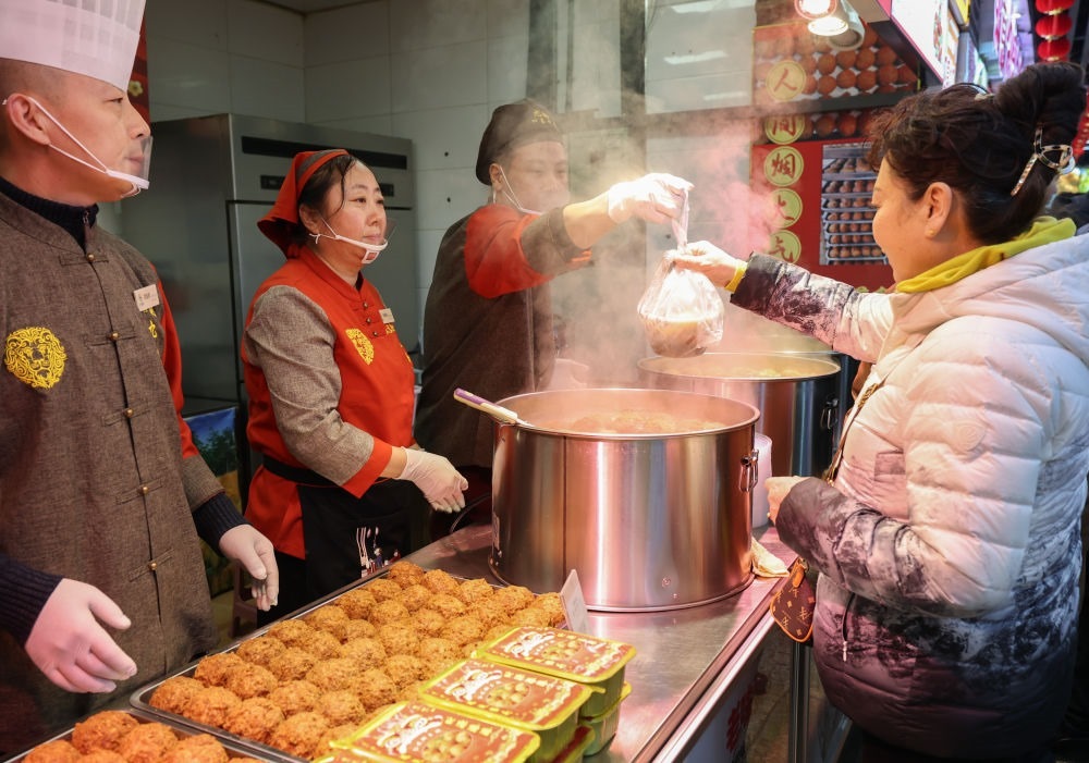 2025年1月22日,游客在沈陽中街長安寺胡同小吃街游玩。