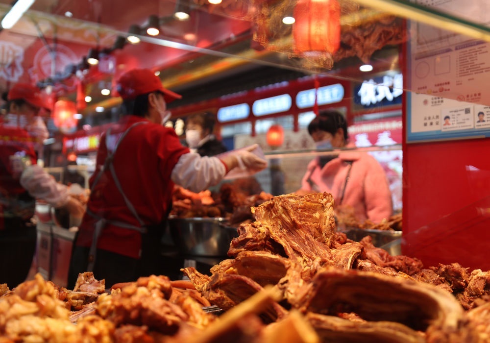 2025年1月22日,游客在沈陽故宮非遺年貨市集游覽消費。