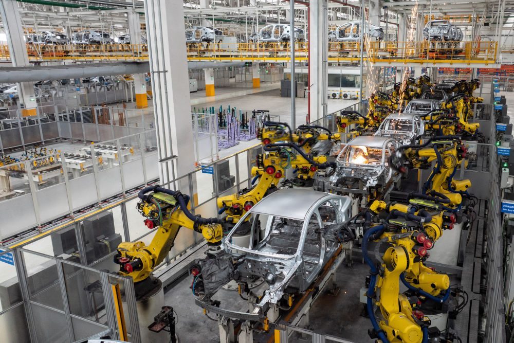 這是2024年3月21日在比亞迪長(zhǎng)沙雨花工廠(chǎng)拍攝的自動(dòng)化生產(chǎn)線(xiàn)。2024年中國(guó)新能源汽車(chē)產(chǎn)量突破1300萬(wàn)輛,人工智能、數(shù)字經(jīng)濟(jì)等領(lǐng)域創(chuàng)新成果持續(xù)涌現(xiàn),處處都能看到民營(yíng)企業(yè)大顯身手。