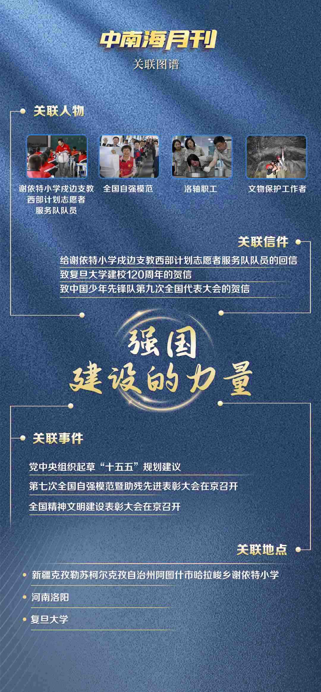 青年是強(qiáng)國建設(shè)的先鋒隊(duì)、突擊隊(duì)。給謝依特小學(xué)戍邊支教西部計(jì)劃志愿者服務(wù)隊(duì)隊(duì)員回信,總書記為他們點(diǎn)贊,并鼓勵(lì)廣大青年“厚植家國情懷,練就過硬本領(lǐng)”,“為中國式現(xiàn)代化建設(shè)貢獻(xiàn)青春力量”;致信祝賀復(fù)旦大學(xué)建校120周年,總書記希望復(fù)旦大學(xué)“深化教育科研改革,推動科技自主創(chuàng)新和人才自主培養(yǎng)良性互動”,不斷提升服務(wù)國家重大戰(zhàn)略和區(qū)域經(jīng)濟(jì)社會發(fā)展能力。