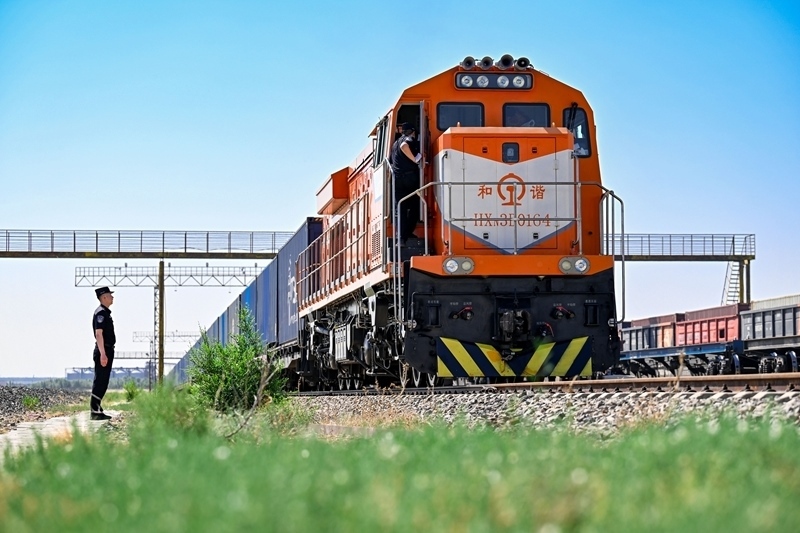 6月22日,一列中歐班列通過(guò)內(nèi)蒙古二連浩特鐵路口岸入境。