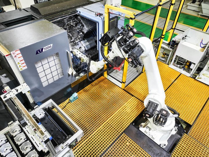 這是2025年5月9日在位于重慶市北碚區(qū)的重慶順多利機(jī)車有限責(zé)任公司精工基地拍攝的自動(dòng)化生產(chǎn)作業(yè)現(xiàn)場(chǎng)(無(wú)人機(jī)照片)。新華社記者 王全超 攝