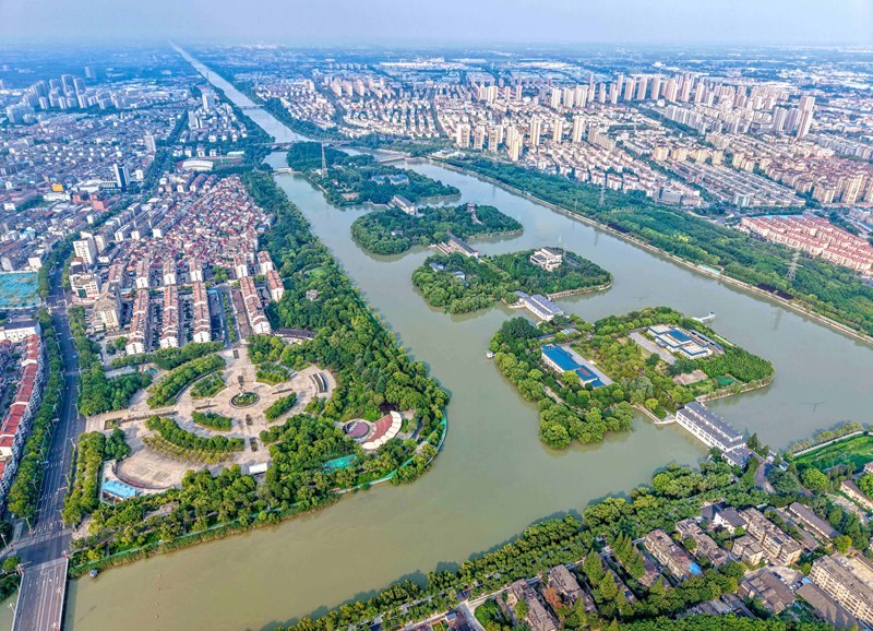 這是位于江蘇省揚州市江都區(qū)的南水北調東線源頭江都水利樞紐(7月6日攝,無人機照片)。