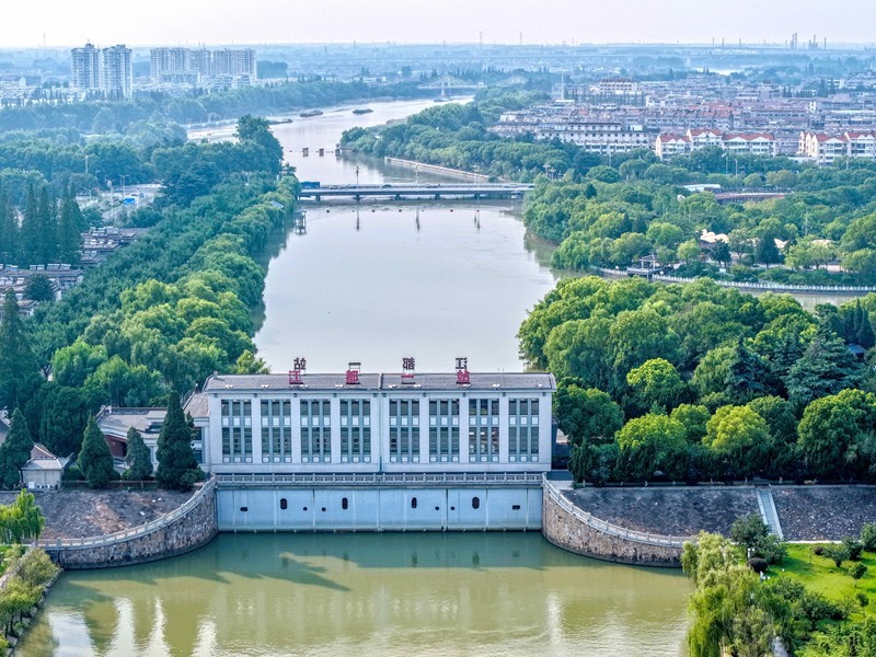 這是位于江蘇省揚州市江都區(qū)的南水北調東線源頭江都水利樞紐一站(7月6日攝,無人機照片)。