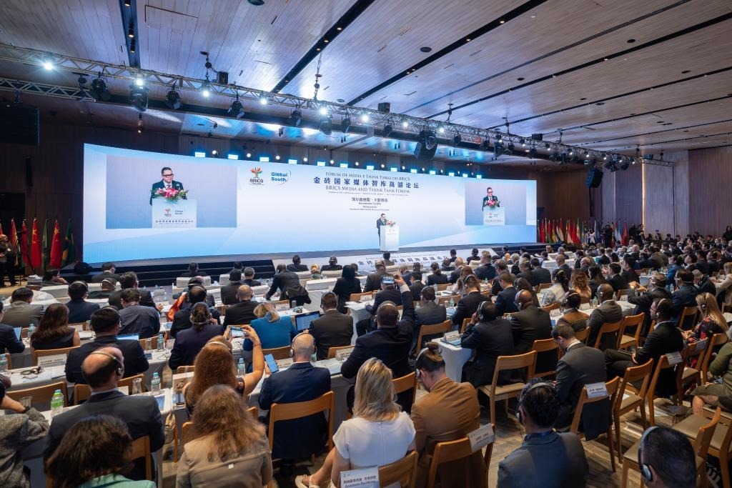 金磚國家媒體智庫高端論壇當?shù)貢r間16日在巴西里約熱內(nèi)盧舉行。來自包括金磚成員國及伙伴國在內(nèi)的36個國家近150家媒體、智庫、政府機構和企業(yè)以及中美洲議會等地區(qū)組織的250余名代表出席論壇,共話金磚國家媒體智庫在世界變局中的責任與擔當。