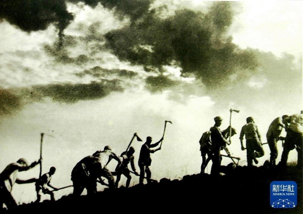 八路軍戰(zhàn)士在南泥灣開荒時(shí)的情景。吳印咸 攝