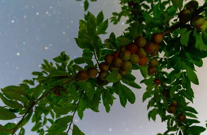 7月25日在黑龍江省佳木斯市湯原縣吉祥鄉(xiāng)拍攝的星空下的沙果。