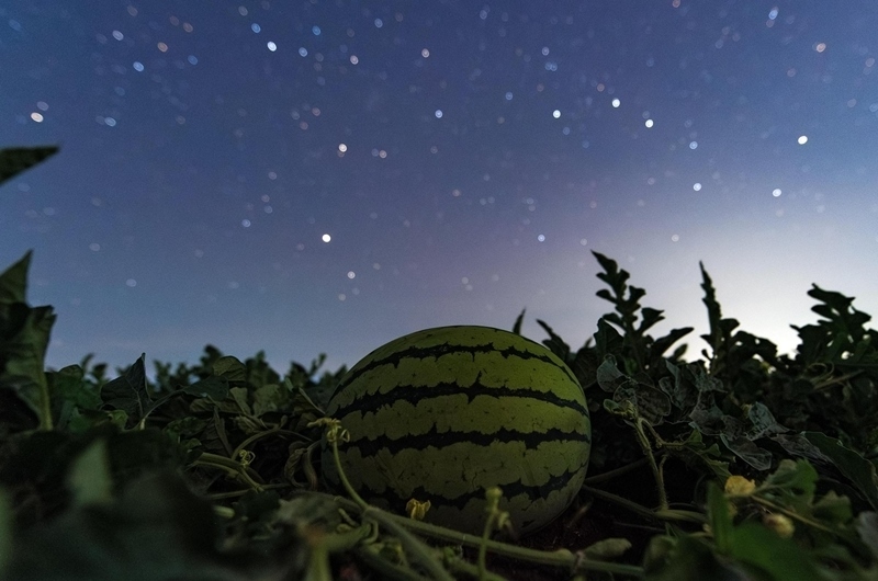 7月23日在黑龍江省佳木斯市富錦市上街基鎮(zhèn)拍攝的西瓜與北斗七星相映成趣。