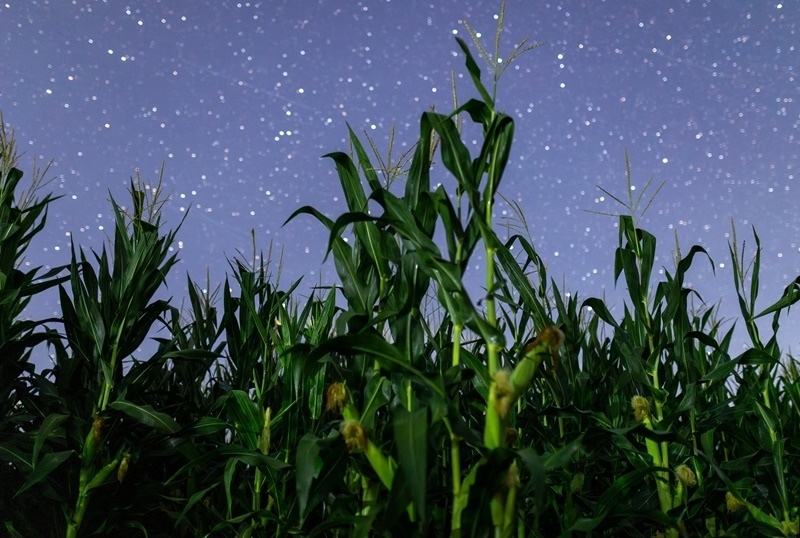 8月2日在黑龍江省佳木斯市湯原縣拍攝的星空下的玉米。