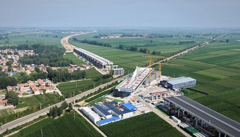當(dāng)日,在山東德州,由中國(guó)鐵建投資集團(tuán)投資建設(shè)、中鐵十四局集團(tuán)承建的德州至上饒高速公路(簡(jiǎn)稱“德上高速”)臨清連接線跨京九鐵路斜拉橋?qū)崿F(xiàn)精準(zhǔn)轉(zhuǎn)體對(duì)接。該橋采用不對(duì)稱矮塔斜拉結(jié)構(gòu),重達(dá)23500噸。